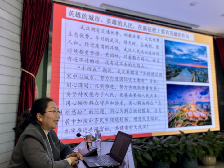 邓洪洁老师围绕毛泽东同志与武汉的不解之缘讲起,分别从“不同时期的毛泽东在武汉”、“毛泽东在武汉的历史足迹”、“毛泽东在武汉的重要工作”和“毛泽东在武汉的生活轶事”等四个角度,带领大家详细回顾了毛泽东同志作为中国共产党主要创始人和重要领导者,在武汉市这个中国共产党早期组织的重要发祥地之一的革命工作、历史著作、重要思想、生活情况等,让大家熟悉、铭记这段历史。