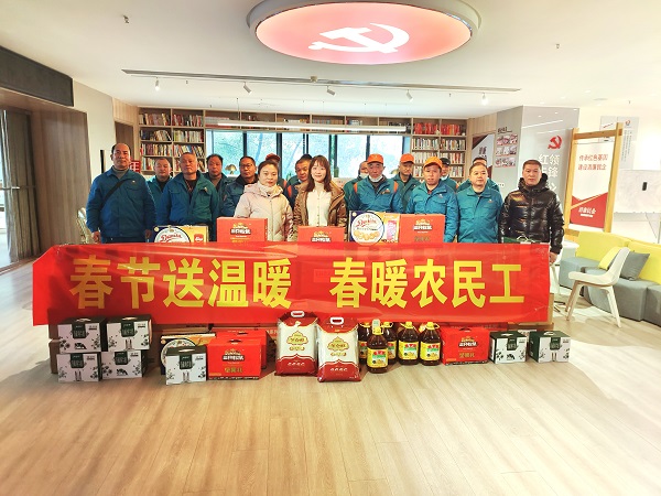 值此2023年春节到来之际,江汉经济开发区工委于1月17日在红T党群服务中心开展了“春节送温暖 春暖农民工”慰问活动,来自公司武昌、汉口、汉阳区域基层一线门店的15名直销员师傅们受邀参加此次活动。