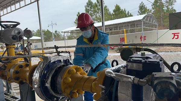 气温骤降,大雪纷飞。管线所和安山储气库多措并举保障场站安全稳定运行。大家清除设备积雪,冒雪对场站设备每2小时巡检一次,开启锅炉为站内设备“供暖”,防止关键设备结冰,并做好消防管道设备防寒防冻工作。三个管线所安技组对调压器运行状况、过滤器压差状况进行巡检,确保设备设施正常运行。“我们在场站分别安排人员24小时值守、检查、维护、调压,保障高压场站的安全稳定运行。”公司总经理助理、生产管理部部长宋继刚介绍。自2022年12月1日以来,武汉高压管网公司共向下游输配18997万方,安山储气库卸车179台。随着气温持续走低,燃气供应量逐步上升,1月14日至15日两天共计向下游输配1034万方。