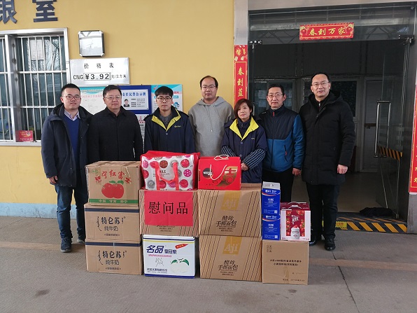 2月4日(农历大年三十)上午,集团公司董事长汪志勇带领集团公司领导班子深入一线开展慰问,向节日期间坚守工作岗位的职工们拜年,感谢大家一年来的辛勤付出,并向大家致以新春的祝福和诚挚的敬意。 一大早,集团公司领导分成四组分别前往天然气公司北湖营业厅、高压管网公司横店调压站、市燃气应急抢险中心、蓝焰油气徐东路加注站、武煤百江汉口罐瓶厂和惠济路门店,每到一处,集团公司领导热情地与职工一一握手,送上亲切的节日祝福,并对他们坚守岗位、舍小家顾大家的奉献精神表示诚挚地感谢,让职工们感受到了浓浓的节日温暖。