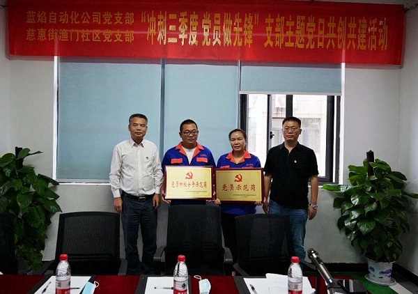 共建活动上,与会领导向蓝焰自动化公司生产部授予党员示范岗、入党积极分子示范岗称号,渔门大队支部向生产一线员工赠送了科技管理类书籍。活动结束后,大家在渔门社区文化广场开展了文明创建“相约环保、清洁家园”活动。(蓝焰自动化公司供稿)