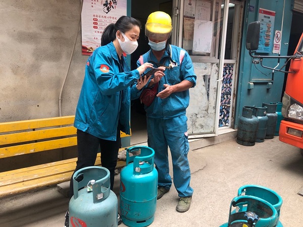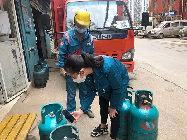 武煤百江公司工作人员认真查询钢瓶二维码信息
