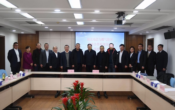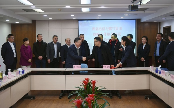 2022年1月14日,在恭送金牛喜迎玉虎之际,中国电信湖北分公司杨才正副总一行,再次拜访集团公司。集团公司与湖北电信正式签订战略合作框架协议,标志着两家龙头企业,通过优势互补、互利共赢,共同开启全面合作的新纪元。集团公司汪志勇董事长、李俊副总经理,办公室、投资发展部、天然气公司、设计院及蓝焰自动化公司等相关负责人出席签约仪式。